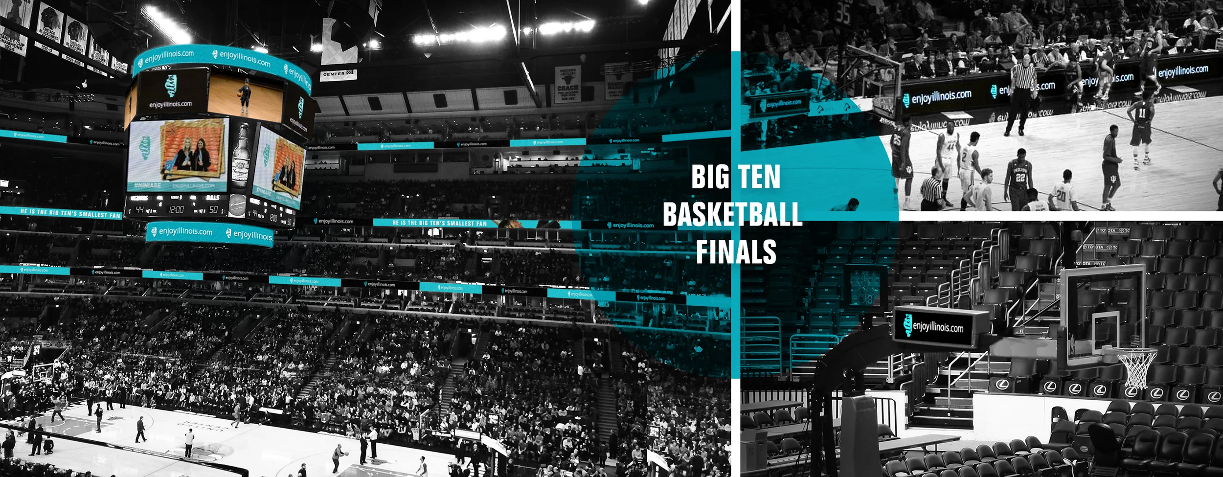 LED displays and video on center scoreboard, courtside signage and a live photo feature of MiniAbe photobooth streaming on center scoreboard at the United Center.