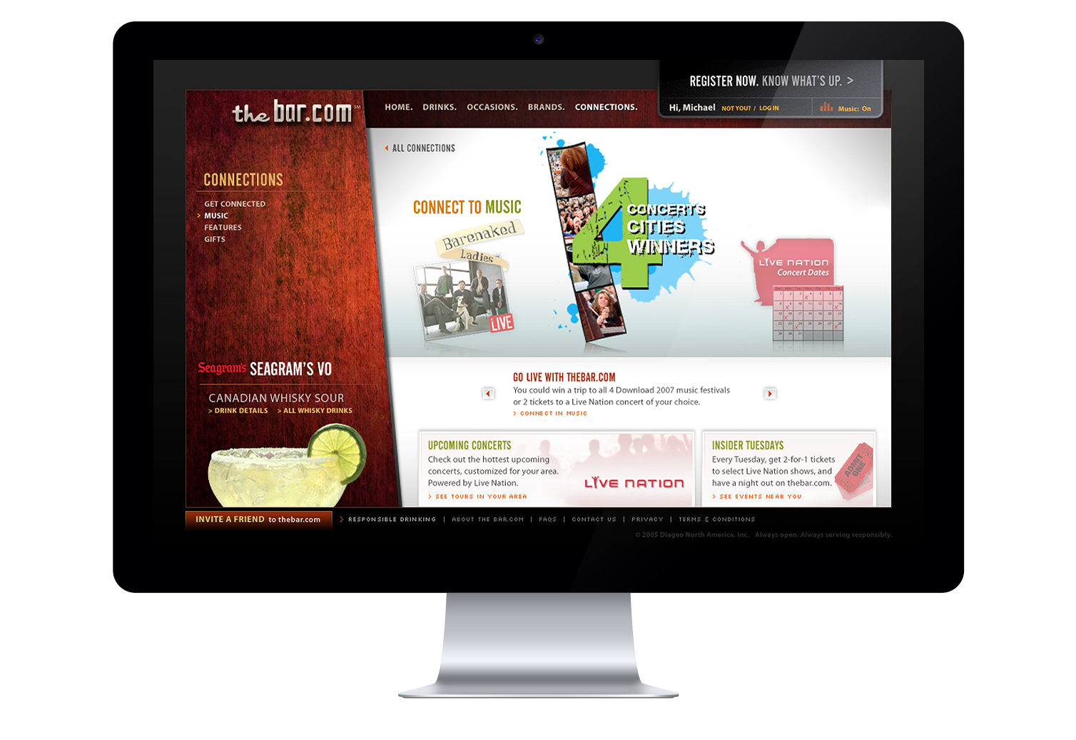 Exclusive content, early warnings, live music ticket discounts, etc. That's what visitors to Thebar.com got once we struck a deal with Livenation. This all came to life in the Connections section created specifically for promotional content.