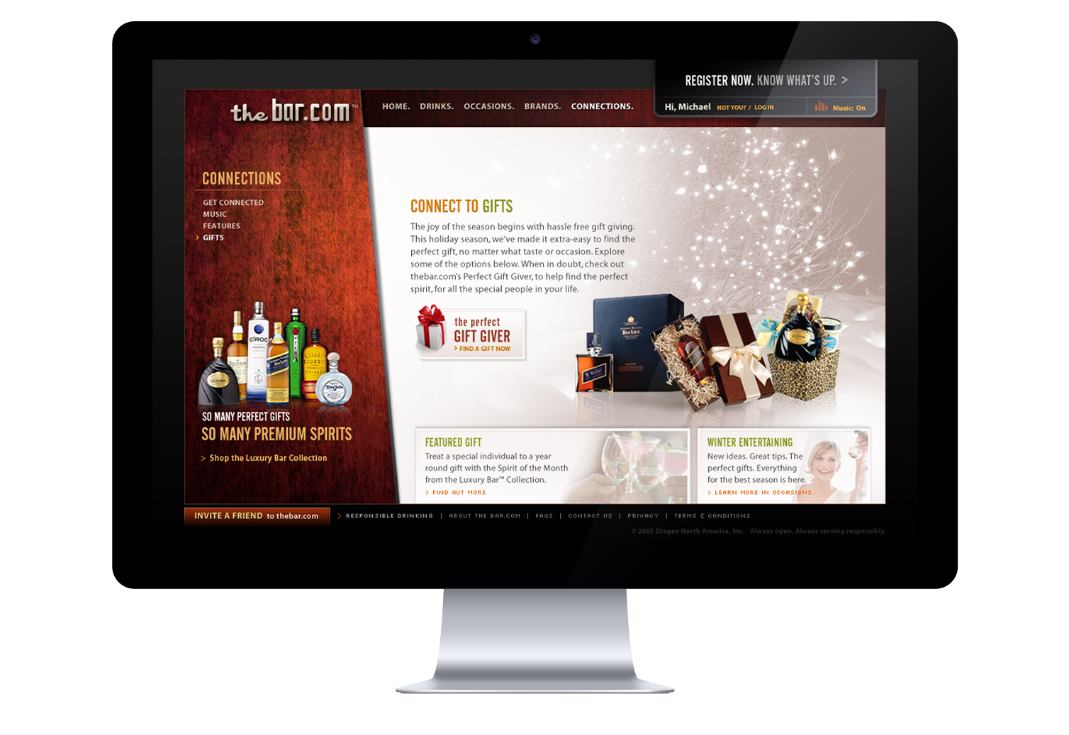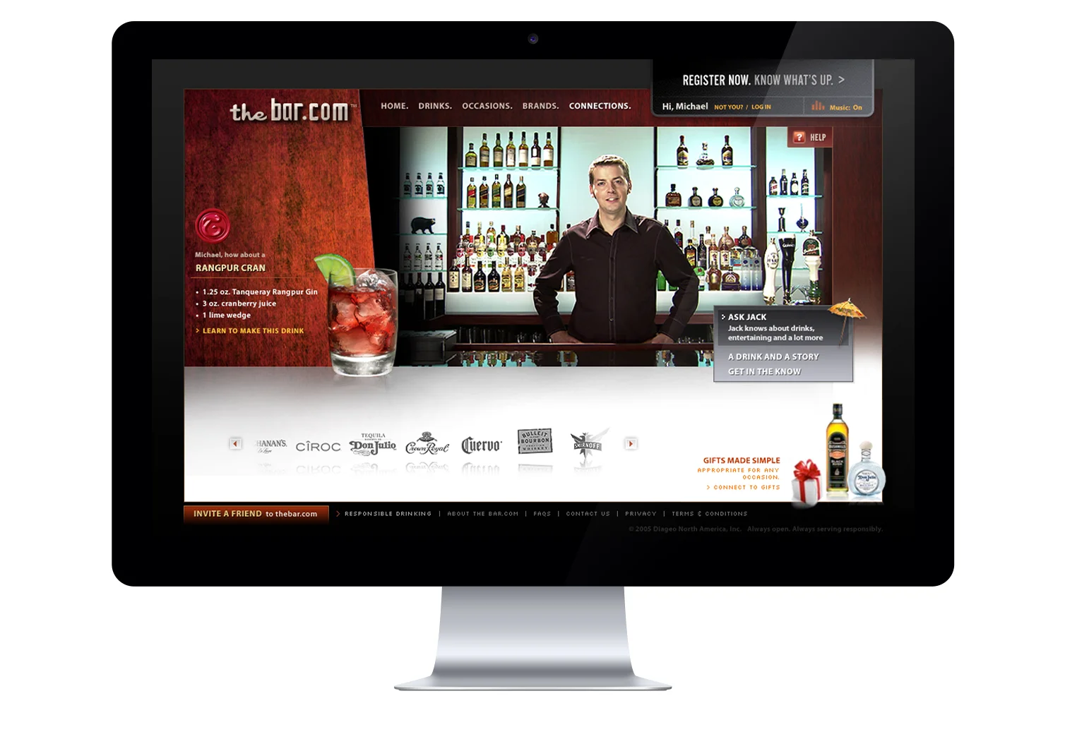 Back in the days of flash Thebar.com was created to serve as a digital hub for all of Diageo's portfolio of brands. Beer, wine and spirits were all represented at the core and on the surface a virtual bartender acted as the gateway to content.
