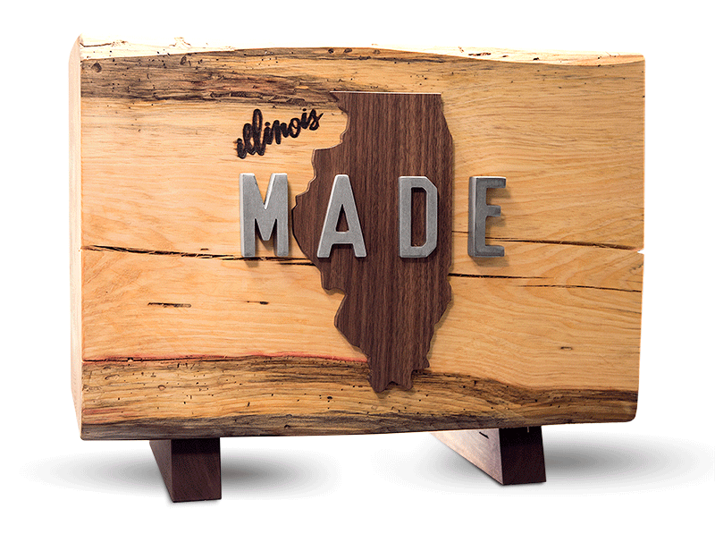 To launch the series, a physical expression of the Illinois Made logo was crafted in Illinois by a local artisan.
