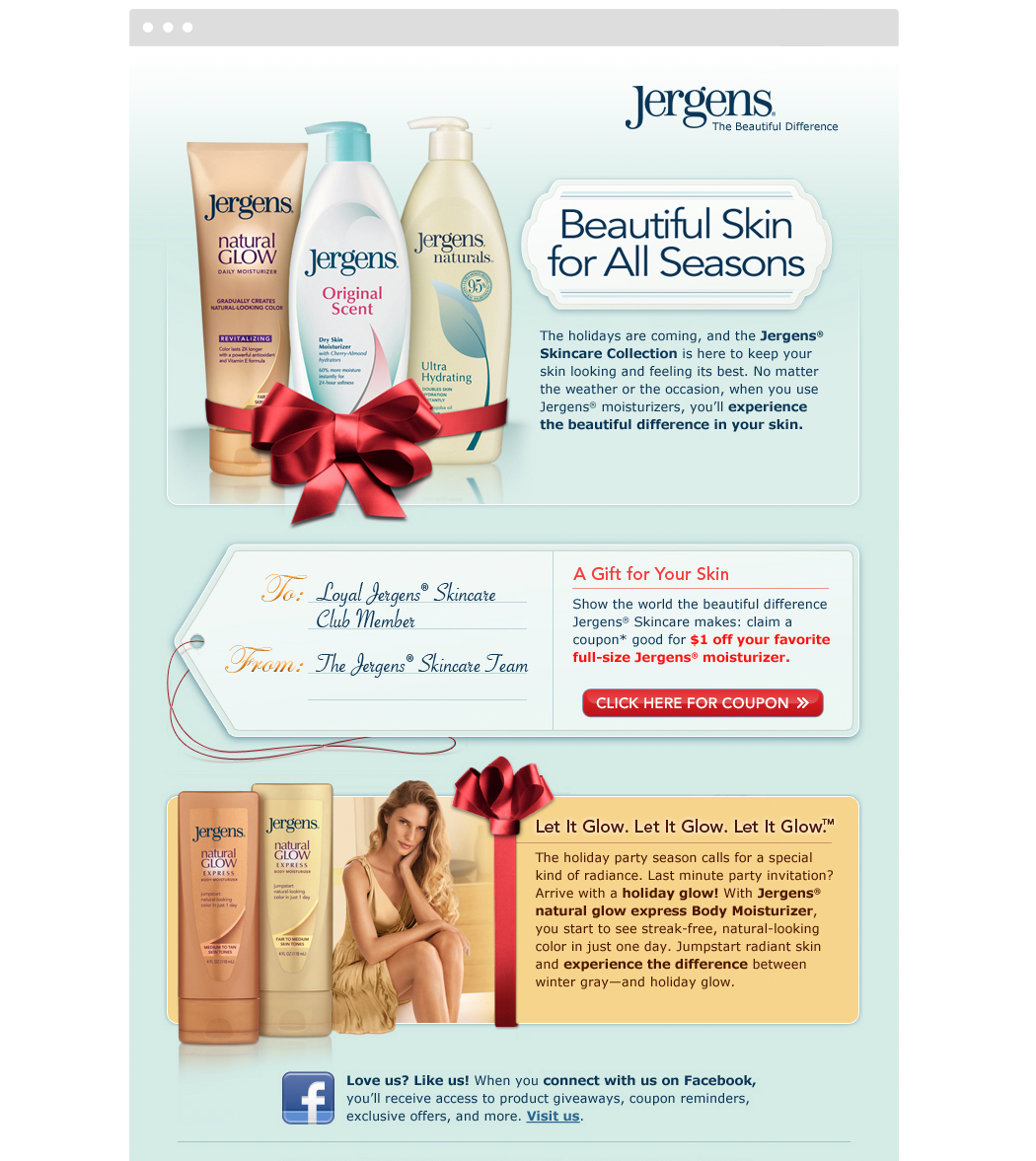 A top down, bottom up redesign of the Jergens.com consumer website. From a new look and design feel to product additions to social integration and content creation.